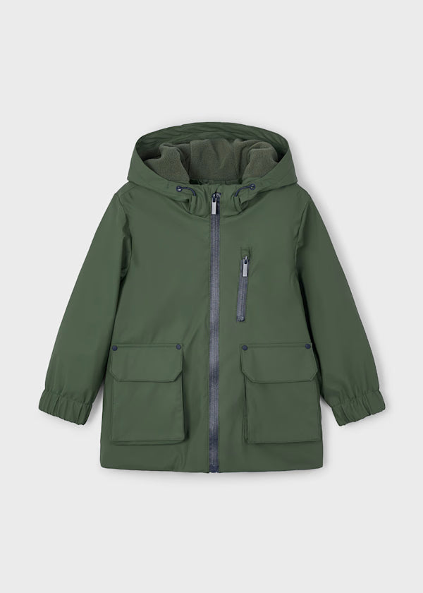 Ημίπαλτο μακρυμάνικο για αγόρι. Γιακάς με κουκούλα. Κλείνει στο κέντρο μπροστά με φερμουάρ. Απαλή φόδρα από πολυεστέρα εσωτερικά. Με λάστιχο στο κάτω μέρος και τους καρπούς για καλύτερη εφαρμογή. Λειτουργικές τσέπες μπροστά.