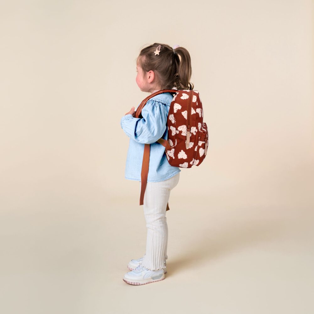 Αυτό το καφέ σακίδιο πλάτης από τη συλλογή Adore More είναι τυπωμένο με ένα χαριτωμένο στάμπα καρδιάς. Το σακίδιο έχει μια εύχρηστη μπροστινή τσέπη με φερμουάρ με χώρο για μικρότερα αντικείμενα που πρέπει να έχετε μαζί σας. Η μεγάλη κύρια θήκη έχει ένα εύχρηστο διπλό φερμουάρ και προσφέρει χώρο για ένα κουτί μεσημεριανού γεύματος ή επιπλέον σετ ρούχων, για παράδειγμα. Βολικό όταν το παιδί σας παίρνει το σακίδιο στο σχολείο. Στο εσωτερικό του σακιδίου υπάρχει φερμουάρ για μικροαντικείμενα. Η τσάντα έχει επίσης ετικέτα ονόματος στο εσωτερικό, ώστε όλοι να γνωρίζουν σε ποιον ανήκει αυτό το χαριτωμένο σακίδιο Kidzroom. Επιπλέον, διαθέτει ελαστική τσέπη για μπουκάλι για να μην γλιστράει. Αυτό το σακίδιο πλάτης έχει επένδυση για καλύτερη ποιότητα και μεγαλύτερη αντοχή. Το σακίδιο μπορεί να μεταφερθεί στη θηλιά στο πάνω μέρος ή στο πίσω μέρος με τους ρυθμιζόμενους ιμάντες ώμου.