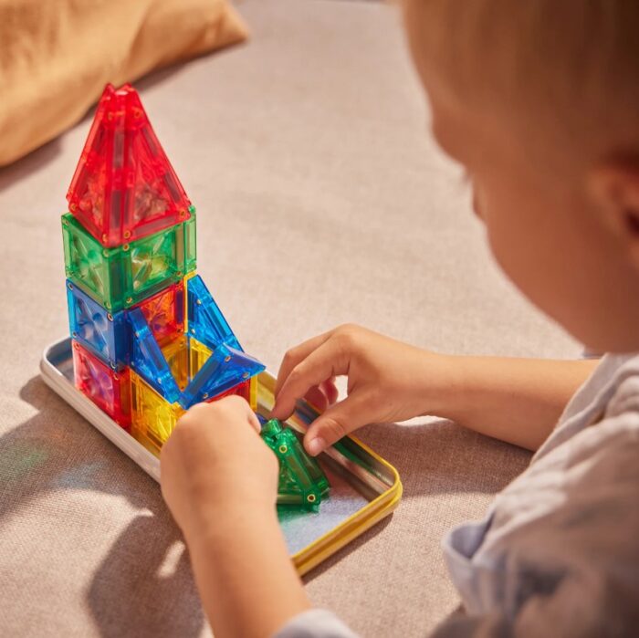 Τα 28 mini μαγνητικά πλακίδια έρχονται σε μεταλλικό κουτί, κρατώντας όλες τις μικρές δημιουργίες οργανωμένες, σταθερές και ασφαλείς κατά τη μεταφορά.