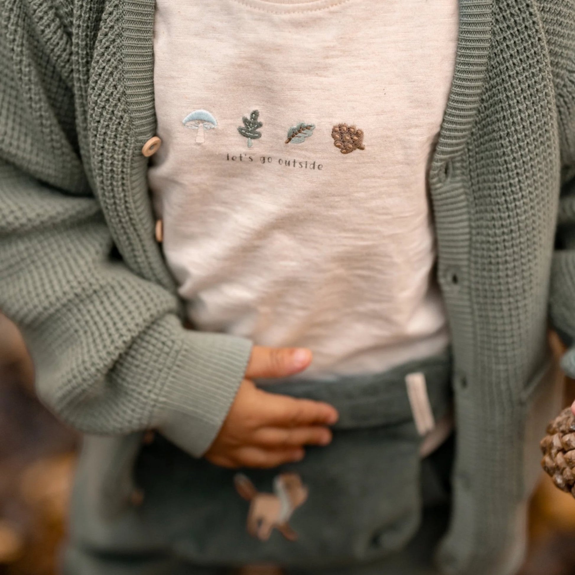 Αυτό το μακρυμάνικο μπλουζάκι της Little Dutch, σε υπέροχη ουδέτερη απόχρωση, φέρνει τη γαλήνη του δάσους στο παιχνίδι της καθημερινότητας. Με ένα χαριτωμένο κέντημα με θέμα το δάσος, προσθέτει μια παιχνιδιάρικη νότα στην εμφάνιση του μικρού σας.