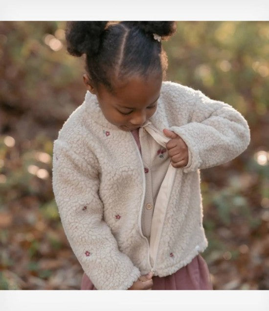 Αυτή η εξαιρετικά απαλή ζακέτα teddy από τη Little Dutch είναι απαραίτητη για τις κρύες ημέρες. Διακοσμημένη με χαριτωμένα κεντήματα λουλουδιών σε όλη την επιφάνεια, είναι τόσο πρακτική όσο και αξιολάτρευτη.