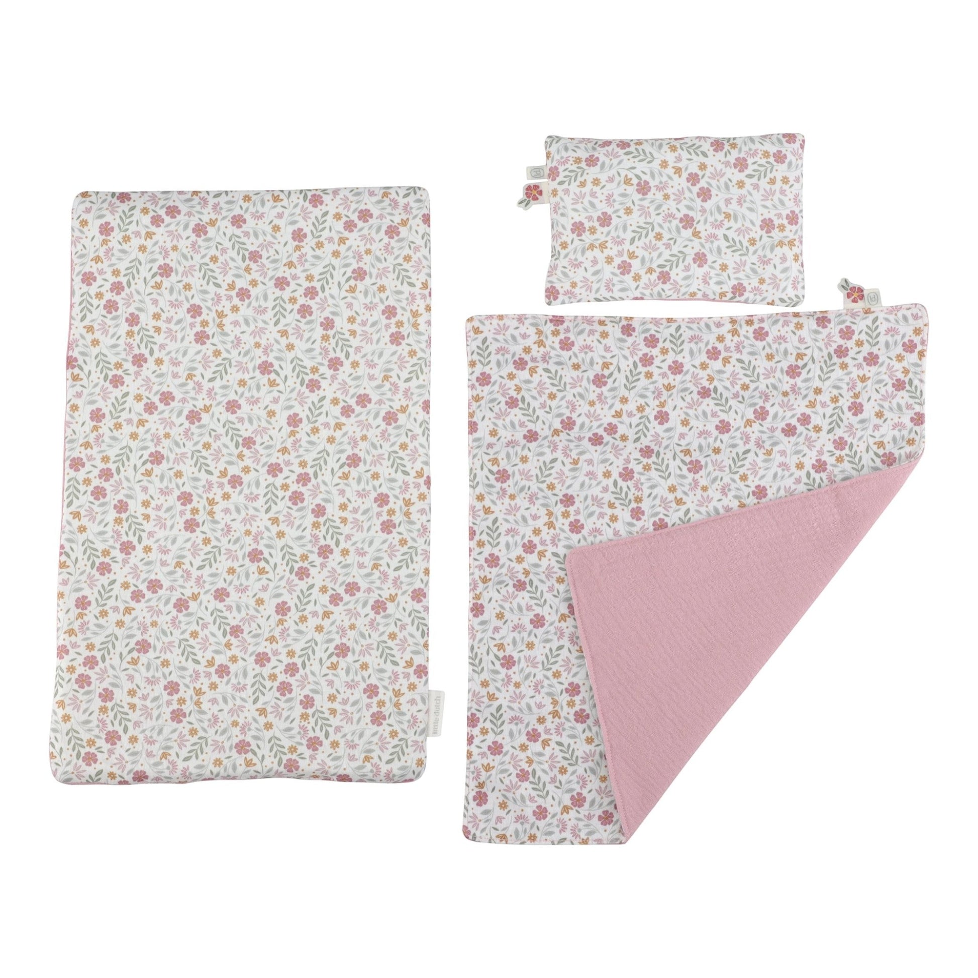 Είναι κατασκευασμένο από ανθεκτικό ξύλο και για να είναι ιδιαίτερα άνετο για τα κουκλάκια σας, συνοδεύεται από μαξιλάρι, κουβερτούλα και στρωματάκι με υπέροχο φλοράλ σχέδιο.